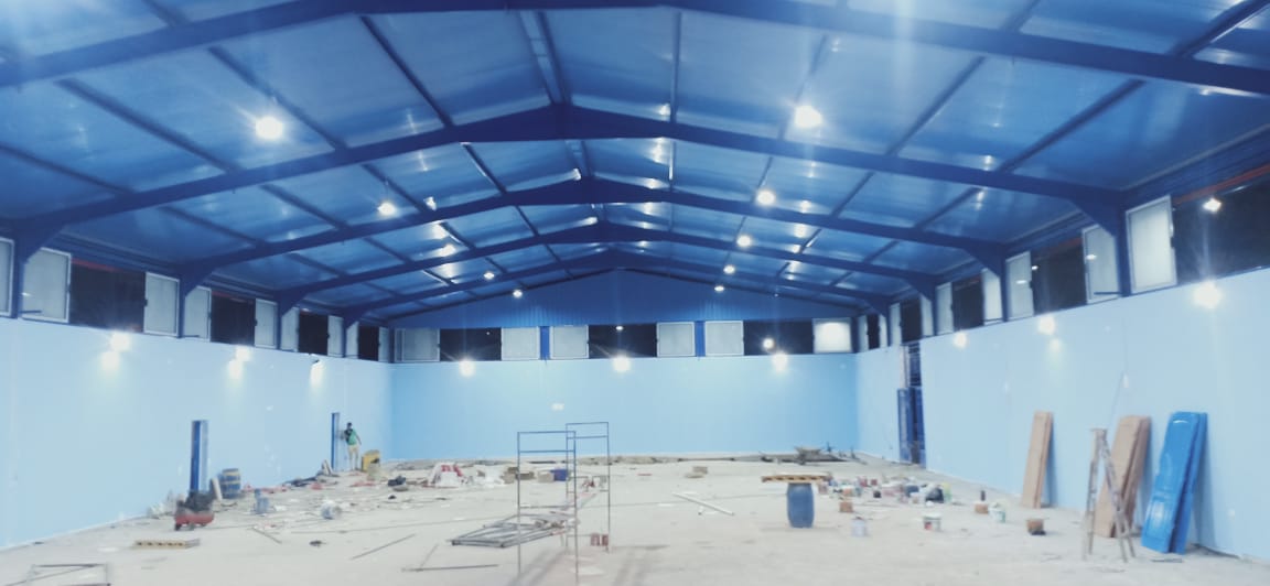 مدة تنفيذ المشروع 8 أشهر تم تنفيذ الأعمال فى 4 أشهر من أعمال أنشاءات معدنية ودورات مياة وغرف خلع الملابس وتشطيبات داخلية وخارجية حسب مواصفات الأتحاد المصرى للجمباز حيث تمتلك الشركة الكوادر والكفاءة على أنجاز الأعمال فى أقل وقت ممكن وأعلى جودة